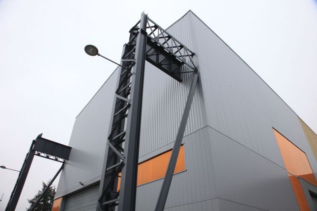 Agrandissement de l'atelier de peinture, sur un pignon de 23 m de hauteur en site occupé.
